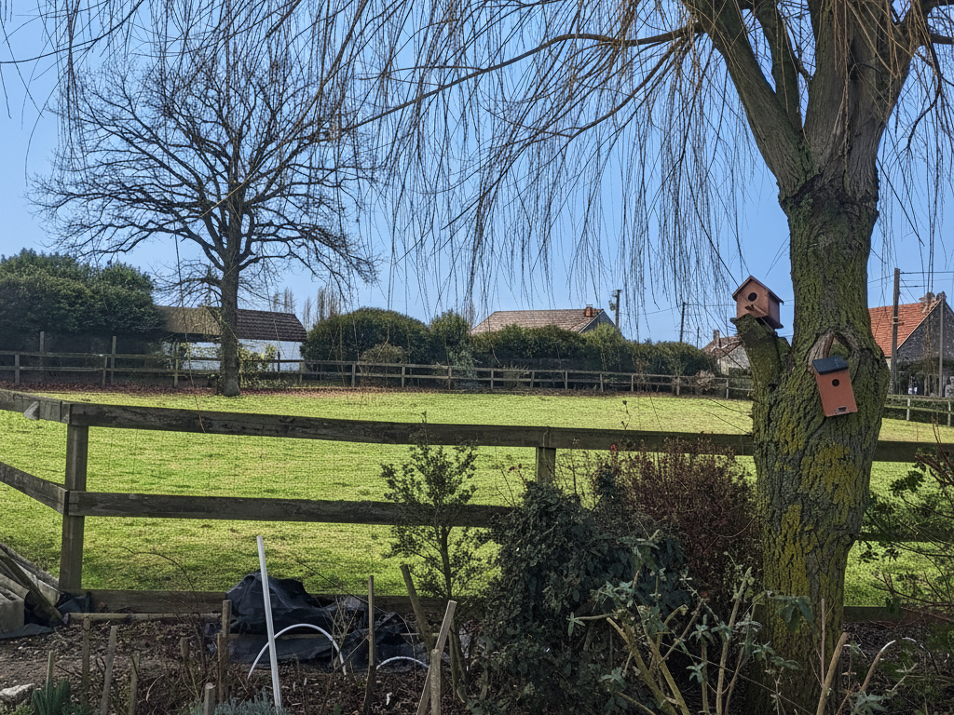 Grand ENCLOS de 1200m2 env (chevaux) et de 4 boxes à chevaux (équipés eau + électricité),