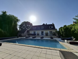 NEW EXCLUSIVE to the agency! Nadiya PETRYCHUK (EI) offers you in the charming village of Saint-Augustin (77515) this beautiful villa of 200 m2 on a fenced and wooded plot of approximately 4870 m2. This house consists of Ground floor: entrance hall, double living room and kitchen with direct access to the terrace, bedroom with shower room, WC with washbasin, pantry Upstairs: landing, bedroom, bedroom with dressing room, master bedroom with dressing room, bedroom, bathroom, shower room, WC A full basement. Exterior: double garage, 2 terraces to enjoy the peace and quiet and the south-facing aspect. Beautiful 64 m2 heated swimming pool with a heat pump. You will be charmed by this ideally located house, with its generous and charming spaces, suitable for all projects (large family, guest house, Airbnb or gîte, professional practice, ...). A must-see! (Many additional photos are available directly on the agency's website) 1